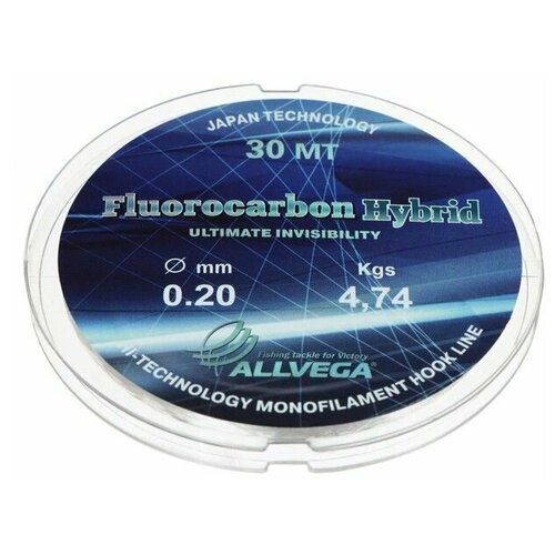 Леска монофильная ALLVEGA "Fluorocarbon Hybrid" 30м 0,20мм, 4,74кг, флюорокарбон 65%