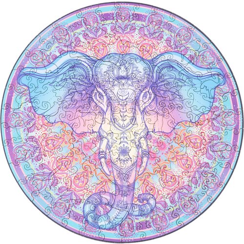 Деревянные пазлы для детей и взрослых ANIMA WOOD "Слон" 30х30 см, 160 уникальных деталей / Головоломка круглый пазл из дерева
