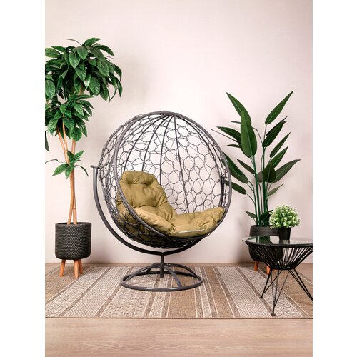 Кресло садовое M-Group круг вращающийся ротанг ротанг серый, серая подушка