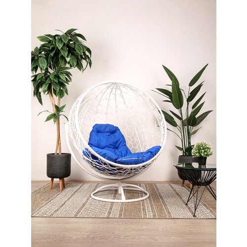 Кресло садовое M-Group круг вращающийся ротанг ротанг белый, зелёная подушка