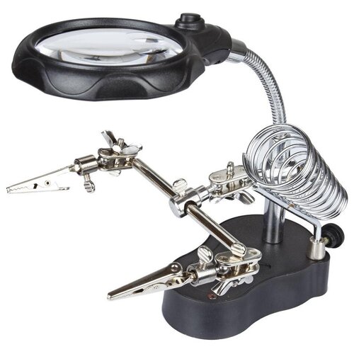 Лупа ANYSMART настольная 3.5x, на гибком штативе с держателем и подсветкой (2 LED)