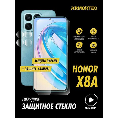 Защитное стекло на Honor X8A экран + камера гибридное ARMORTEC