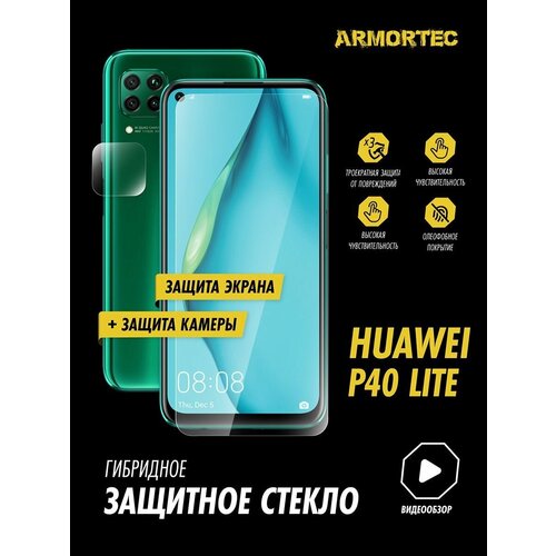Защитное стекло на Huawei P40 lite экран + камера гибридное ARMORTEC