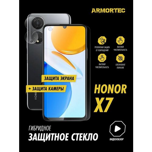 Защитное стекло на Honor X7 экран + камера гибридное ARMORTEC