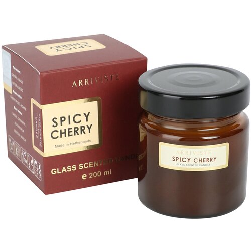 Аромасвеча ARRIVISTE Spisy Cherry в стеклянном подсвечнике/декоративная восковая свеча для дома, декора, интерьера в подарок/45 ч. горения
