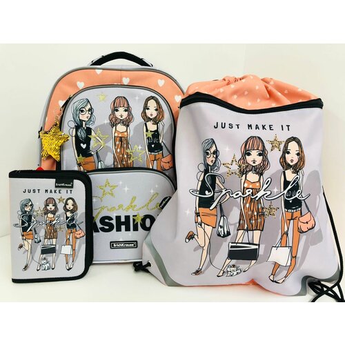 Рюкзак Erich Krause с наполнением "Top Models" (топ модели, девочки) (мешок для обуви 500*410мм + пенал-книжка 135*205*30мм)