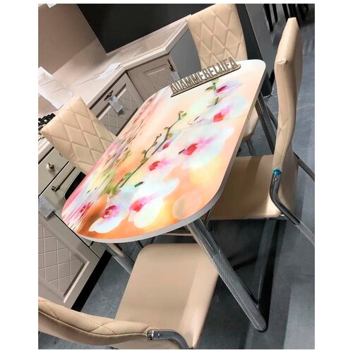 Стол кухонный раздвижной "104" 1100x700x760 Орхидея в воде Фотопечать на прямых ногах