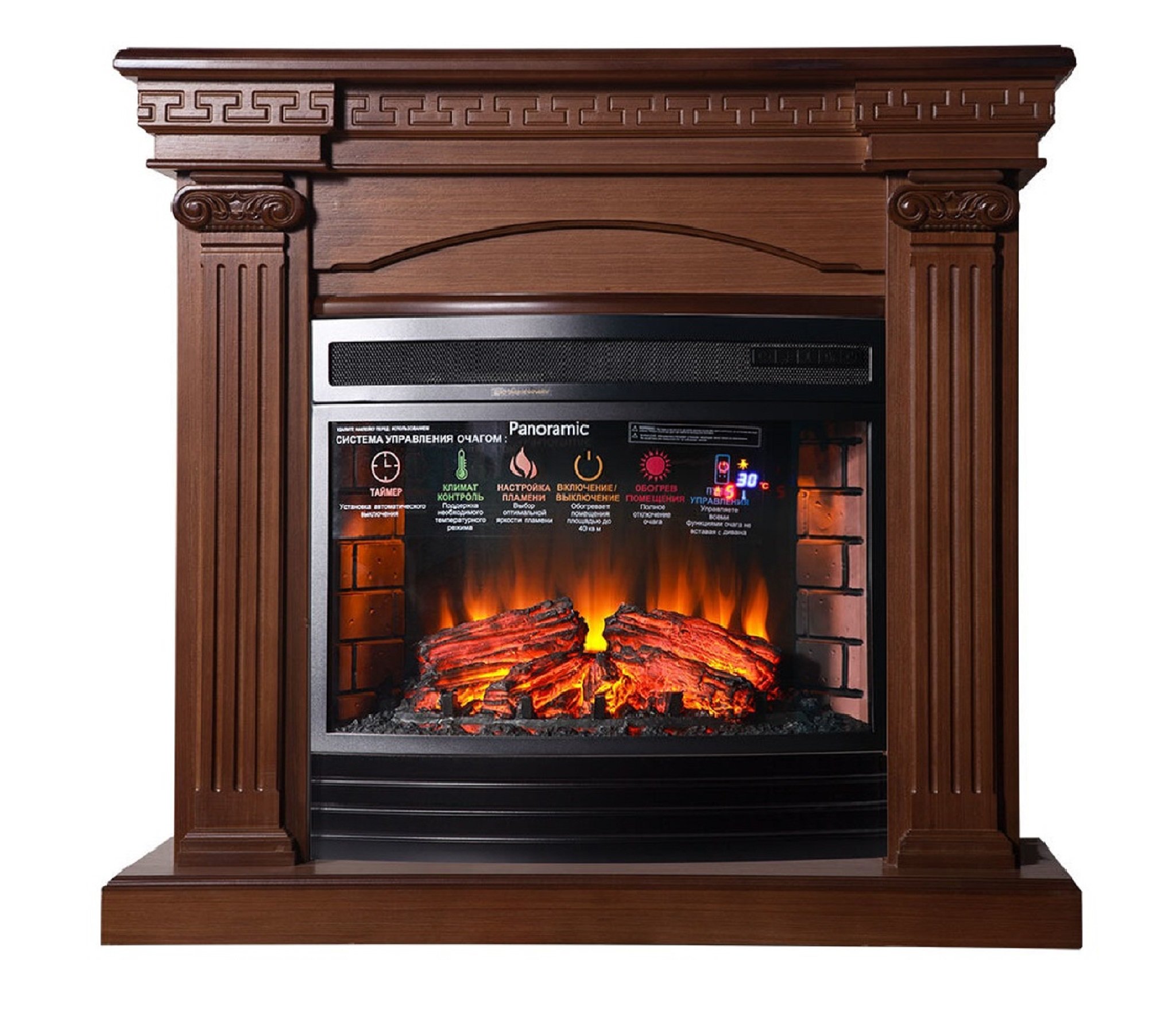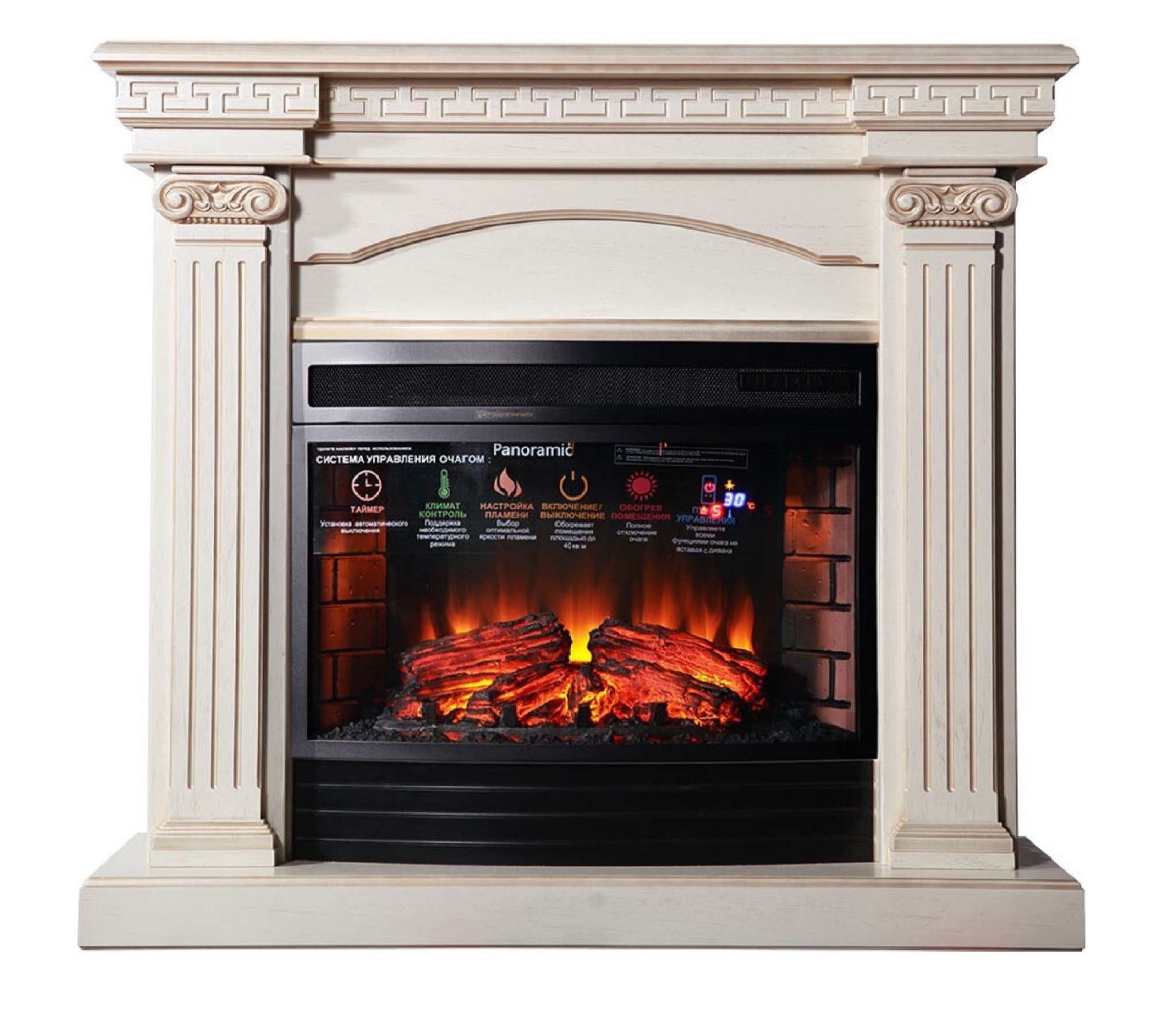 Каминокомплект Афина (с золотой патиной) с очагом Panoramic 25