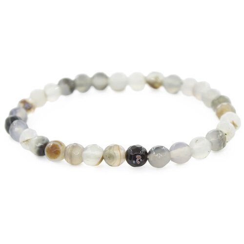 Агат черно-бежево-коричневый 6мм, браслет "Классика" длина 17см