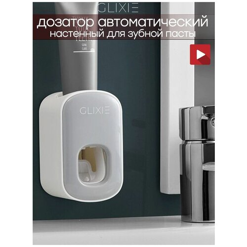Дозатор для зубной пасты настенный одинарный крепление без сверления стен, белый+серый