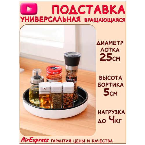 Подставка вращающаяся диаметр 25 см/Органайзер на кухню/Подставка для ванной/Лоток вращающийся/Диспенсер кухонный/Для специй/Для косметики