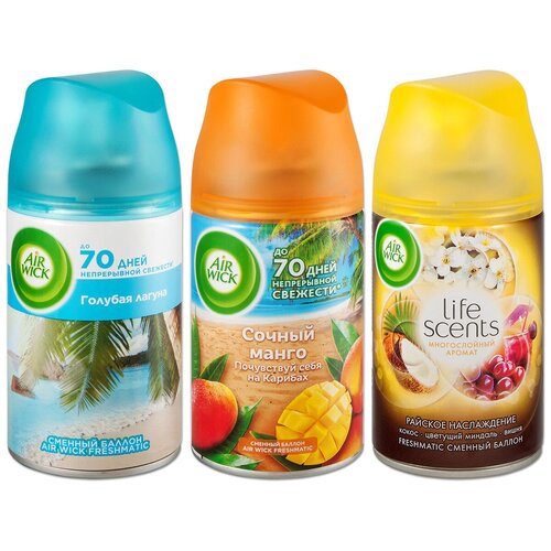 Набор сменных баллонов для освежителя воздуха Air Wick "Райский остров", 3 шт.