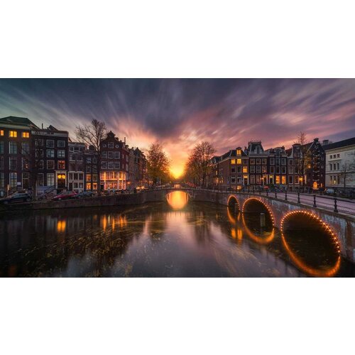 Постер на экокоже 60x80 LinxOne "Мост улица Amsterdam Albert" интерьер для дома / декор на стену / дизайн