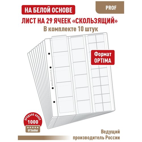 Комплект из 10-ти листов Albommonet "PROFESSIONAL" односторонние на белой основе на 29 ячеек"скользящий". Формат "Optima"