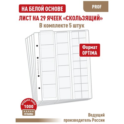 Комплект из 5-ти листов Albommonet "PROFESSIONAL" односторонние на белой основе на 29 ячеек"скользящий". Формат "Optima"