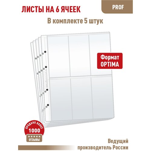 Комплект из 5-ти листов Albommonet "PROFESSIONAL" для хранения на 6 вертикальных ячеек. Формат "Optima"