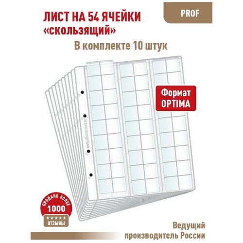 Комплект из 10-ти листов Albommonet "PROFESSIONAL" для хранения монет на 54 ячейки "скользящий". Формат "Optima"