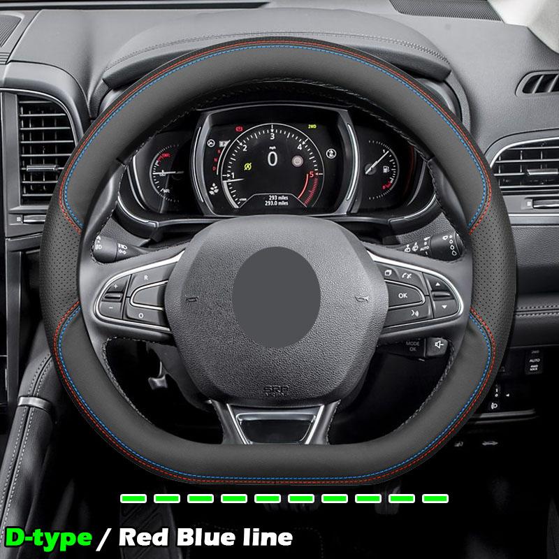 Для Renault Duster Kaptur Logan Megane Sandero ультратонкий кожаный чехол на руль автомобиля противоскользящие аксессуары для ремонта салона D-type-Red Blue line