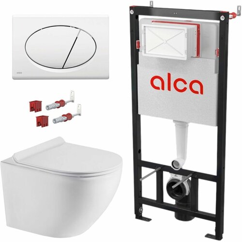 Готовый набор инсталляции Alcaplast AM101/1120 с белой панелью смыва M70+унитаз подвесной REINE B20-11