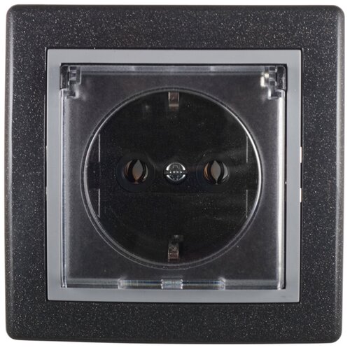 Розетка с рамкой 633.212 скрытая установка графитовая с заземлением с крышкой