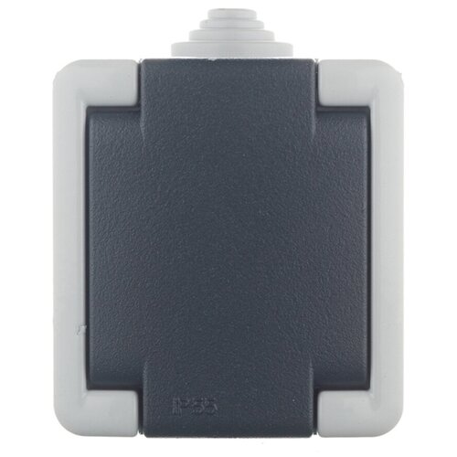 Розетка 2411.1A открытая установка серая с заземлением IP44 с крышкой