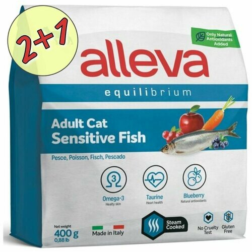 Alleva Equilibrium Sensitive Fish Adult Cat Полнорационный сухой корм для взрослых кошек с рыбой 400 г (акция 2+1)