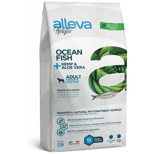 ALLEVA, сухой корм Holistic Dog Adult Ocean Fish Medium/Maxi, для взрослых собак, с океанической рыбой, коноплей и алое вера, 2 кг