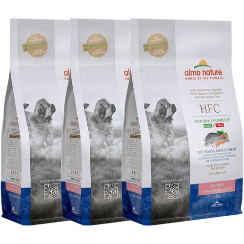 Сухой корм для щенков Almo Nature HFC, окунь, лещ 1 уп. х 3 шт. х 1.2 кг (для мелких и карликовых пород)