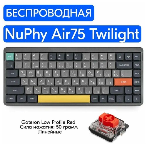 NuPhy Air75 Twilight (серые кнопки), RGB, (Gateron Red Switch) беспроводная механическая