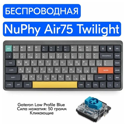 NuPhy Air75 Twilight (серые кнопки), RGB, (Gateron Brown Switch) беспроводная механическая