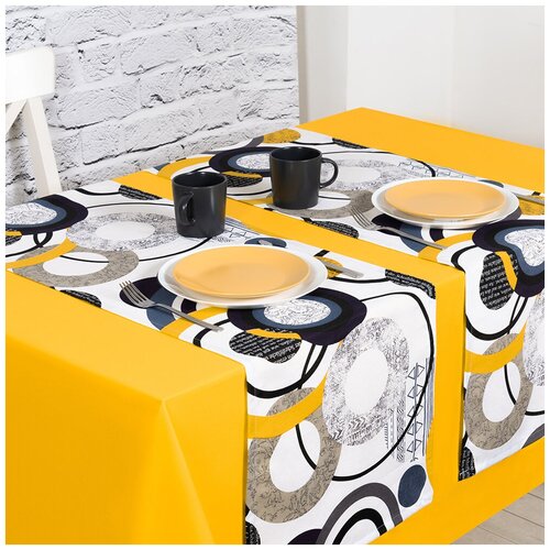 Дорожка-скатерть на стол /комплект - 2 шт/ 40*140 см/ для кухни, дома, дачи/ткань хлопок-полиэстер/ Хайтек /Altali