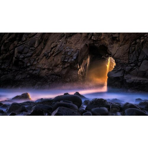 Картина на холсте 60x80 LinxOne "Pfeiffer Beach pacific скала" интерьер для дома / декор на стену / дизайн
