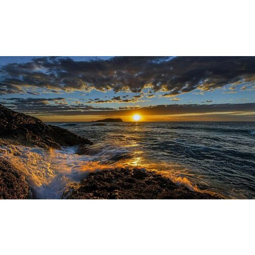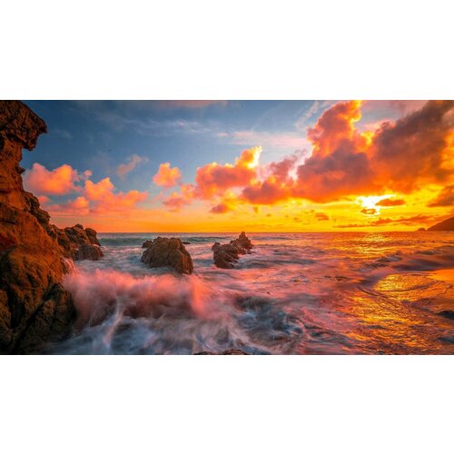 Постер на экокоже 50x80 LinxOne "Закат океан скалы Pacific" интерьер для дома / декор на стену / дизайн