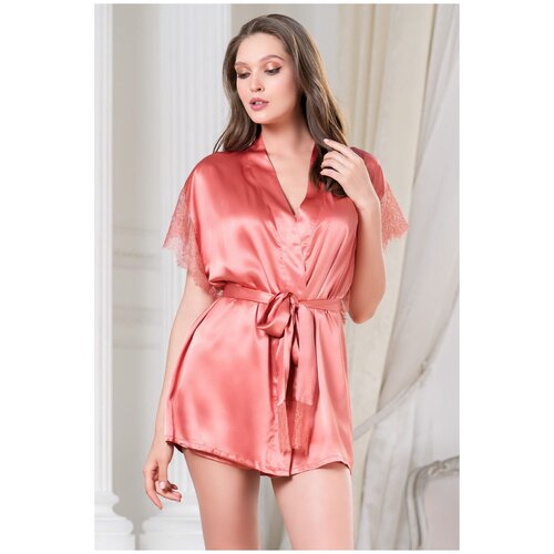 Длинный халат из смесового шелка Mia-Amore, L/XL 48-50, пудра