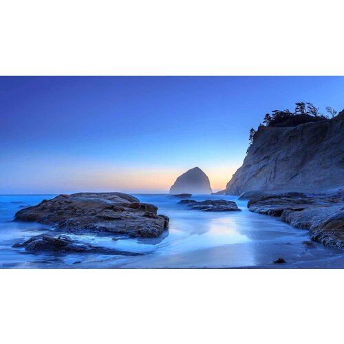 Картина на холсте 60x90 LinxOne "Pacific City камни океан USA" интерьер для дома / декор на стену / дизайн