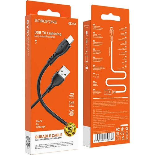Кабель USB - Lightning BOROFONE 2,4A черный 1м