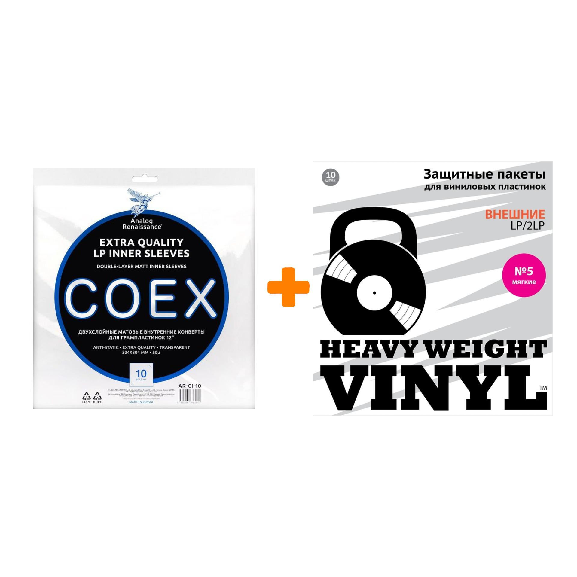 Конверты внутренние COEX для грампластинок 12" 10шт + Пакеты внешние №5 мягкие 10 шт Набор