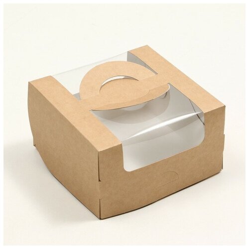 Коробка под бенто-торт с окном, крафт, 14 х 14 х 8 см./ В упаковке: 5