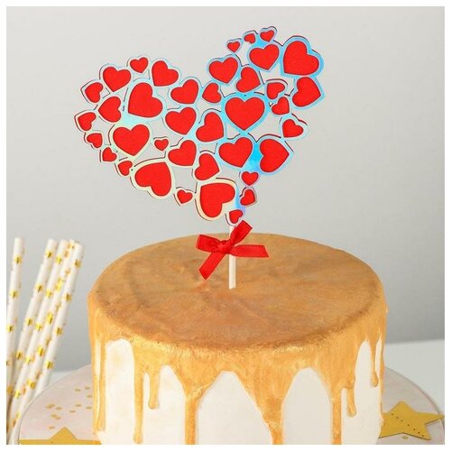 Топпер на торт «Сердце в сердце», 23x12,5 см, цвет красный