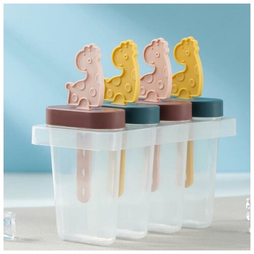 Форма для мороженого «Дино», 4 ячейки, 14×7×13 см, цвет микс