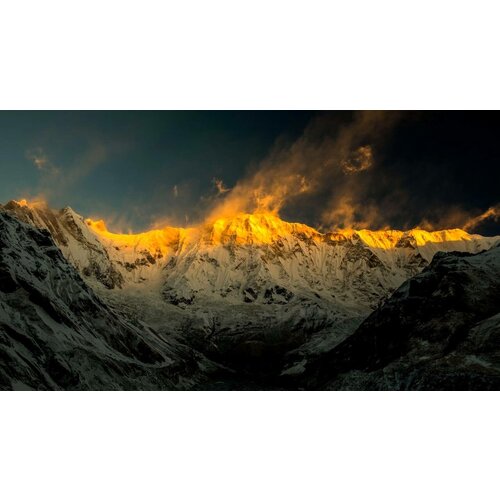Картина на холсте 30x40 LinxOne "Горы Annapurna Закат Солнца" интерьер для дома / декор на стену / дизайн
