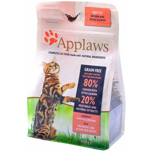 Корм беззерновой APPLAWS Adult для кошек "курица и лосось/овощи: 80/20%" 7,5кг