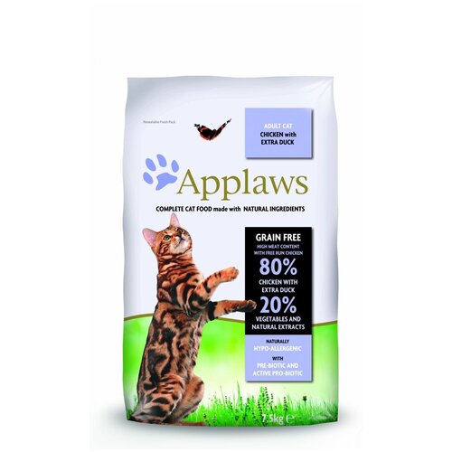 Applaws Беззерновой сухой корм для Взрослых кошек "Курица, Утка и овощи" 7.5кг