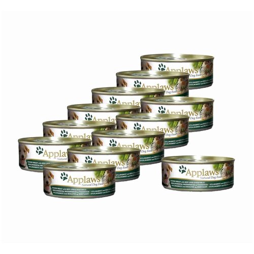 Applaws Консервы для Собак с Курицей, Говядиной, Печенью и овощами (Dog Chicken, Beef, Liver & Veg) 0,156 кг х 12 шт.