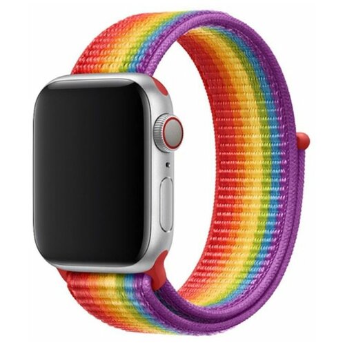 Ремешок нейлоновый для Apple Watch 42/44/45мм (41), ярко-радужный, на липучке