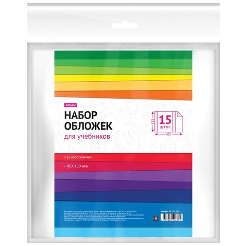 ArtSpace Набор обложек 233х455 для учебников, универсальные, 100мкм, 15шт. прозрачный 15 шт.
