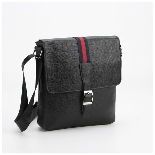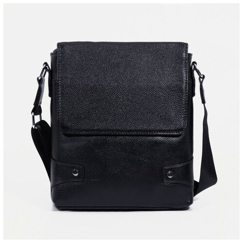 Сумка мужская на клапане, наружный карман, длинный ремень, цвет чёрный