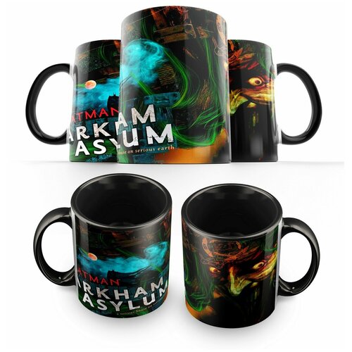 Кружка черная Arkham Asylum A Serious House on Serious Earth comics -1