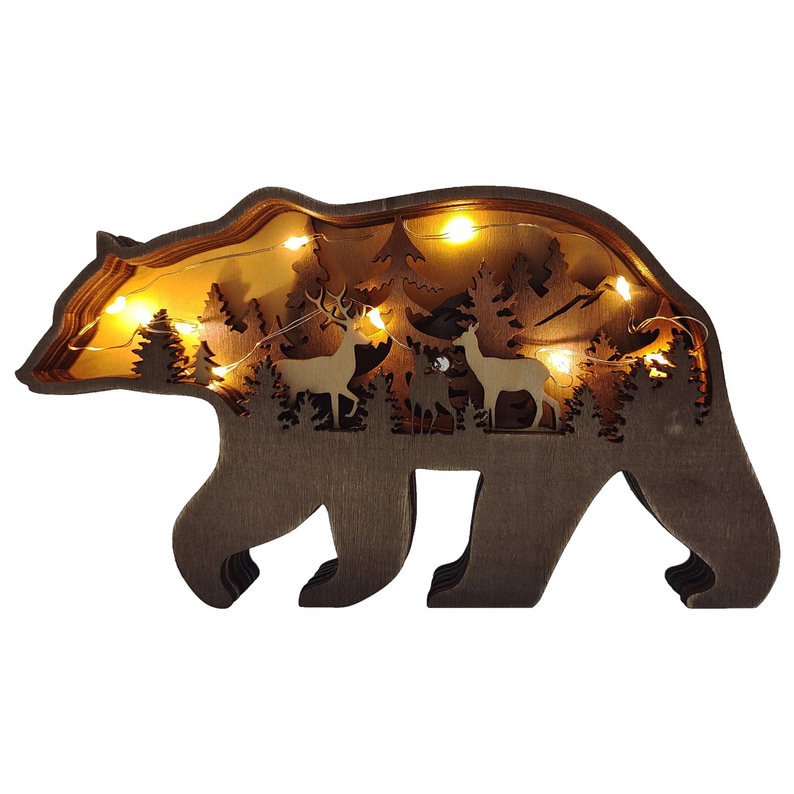 3D Лес Дерево Ремесла Ручная роспись Резьба Ручная работа со светодиодом (Медведь)