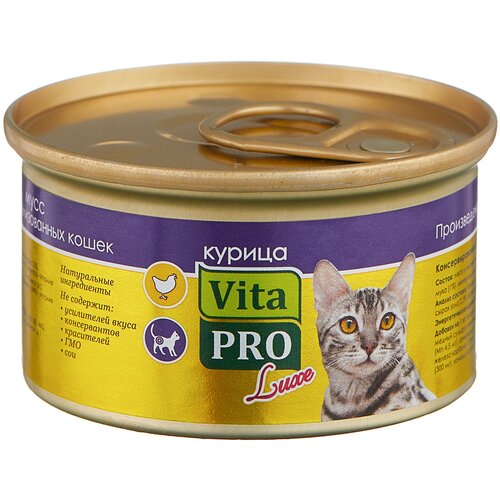 Влажный корм для стерилизованных кошек Vita PRO Luxe с курицей 85 г (мусс)